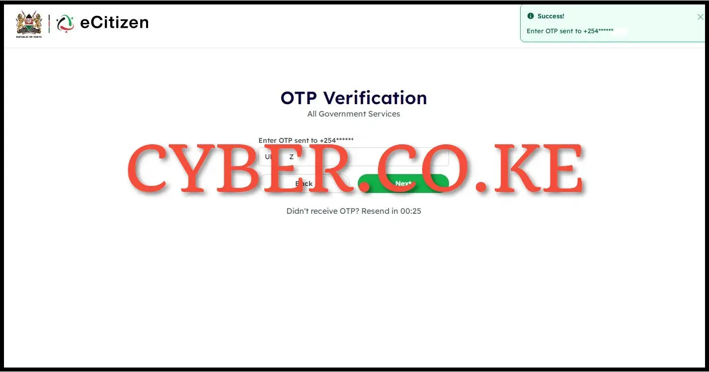 Once you have received the eCitizen account verification code, you need to enter it in the input box . Afterwards, click on the “Next” button so as to sign into your eCitizen account dashboard.