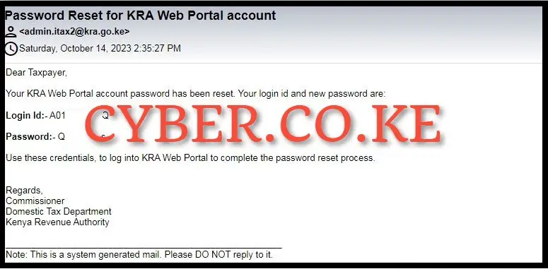 In this step, you need to head over to your email (i.e. the email address that is linked to your KRA PIN Number on iTax) so as to be able to get the iTax Password Reset which is basically a temporary password that will serve as your old password in the process of iTax Password Reset (resetting iTax Password).